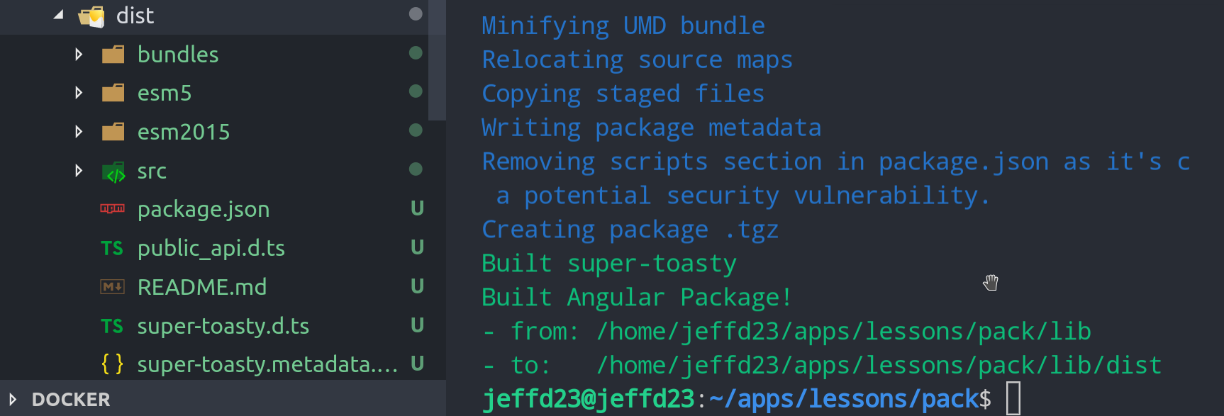 Now run npm run build:lib and you should see output like this: